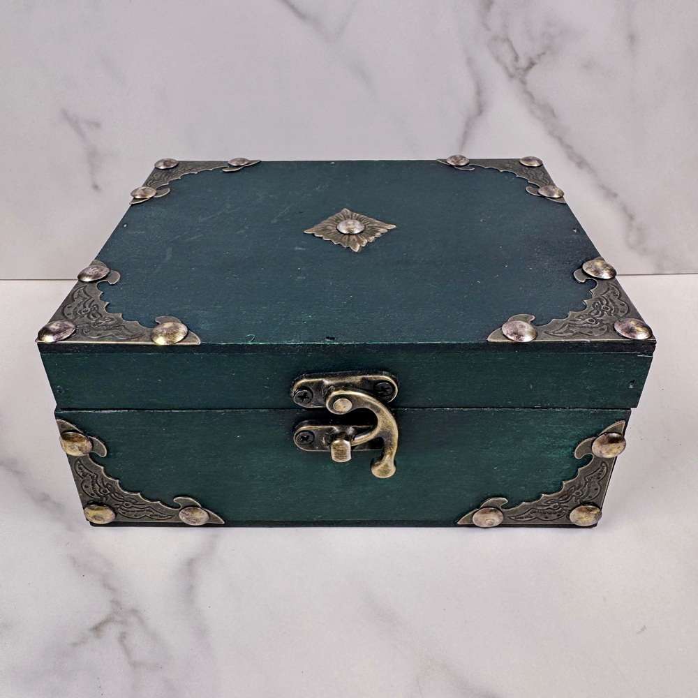This wooden box is crafted to resemble a vintage storage box, adding a touch of nostalgia to your space. It's perfect for storing your tarot deck or any cherished items you want to keep secure and organized.