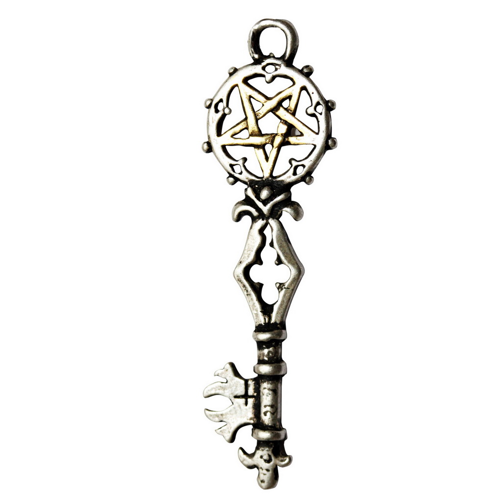 Product Descrpition: Symbolising the Key to the gate of King Solomon's occult learning and arcane knowledge this magickal pendant is reputed to bestow upon its wearer the power of sorcery and should be used with the Wisdom of Solomon. Crafted in English pewter and enhanced with gold plating, the pendant is supplied with a detailed leaflet giving a Ritual of Empowerment (and disempowerment), it is supplied with a lovely, black velvet drawstring keepsake pouch and an 18" link chain.