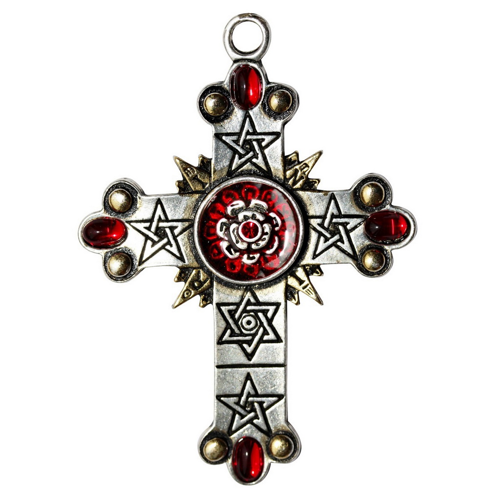 Product Descrpition: Designed by S.L. MacGregor Mathers, the Head of The Order of the Golden Dawn and combining the elements, the planets and the 22 paths, this extraordinary and very magical cross can be the key to Initiation on the path to High Magick. Can be empowered to any High Purpose Enhanced with rose red enamel and stones along with gold plating, the Rose Cross is crafted in English pewter and supplied with a detailed leaflet giving a Ritual of Empowerment (and disempowerment), it is supplied with a lovely, black velvet drawstring keepsake pouch and an 18" link chain
