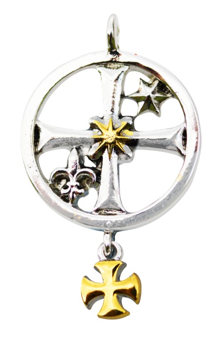 Reproduced from the seal of Knights Templar Preceptor Hugh de Rochefort, the Cross, Star, and Fleur-de-Lys are enclosed in the mystic circle with no beginning and no end. The Rochefort Seal may bring its wearer Good Fortune and Financial Acumen