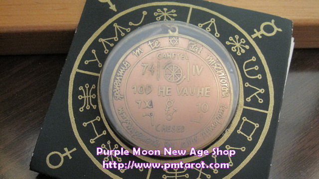Product Descrpition: Faithfully reproduced from the Key of Solomon Talismans in the Warsaw Museum, these unusual brass and copper amulets include a leather necklace and are presented with a hidden leaflet describing their traditional attributes. This Enchanting Key of Solomon Talisman Pendant is used for Success in Work and Trade. Pendant is 1.75" in diameter and comes sealed with all packaging as shown.