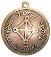This is a faithfully reproduced copy of an amulet from a Knight's magickal belt housed in the Warsaw museum. This powerful charm should be worn to win a lover's heart. Approximate size: 1" in diameter.