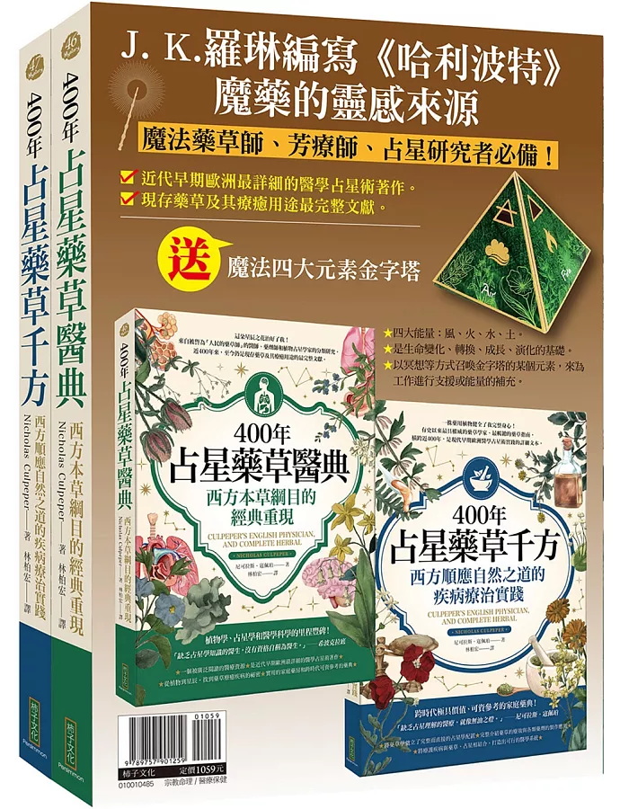 占星藥草套組:400年占星藥草醫典+400年占星藥草千方+魔法四大元素金字塔