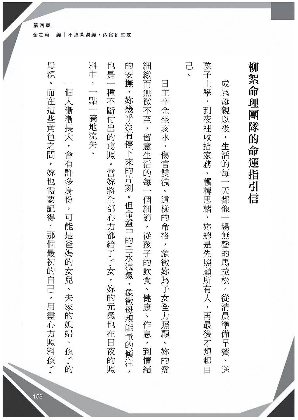 本書從第一章開始,以八字基礎解析帶你理解這套古老的千年智慧,讓命盤成為一份既能看見你的優勢,也能照見盲點的人生使用說明書。