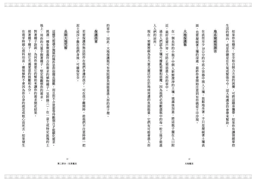 - 四大元素X「石頭、樹、雨與霧」等9種自然魔法,提供超過100種與自然相關,實證有效的咒術、儀式。