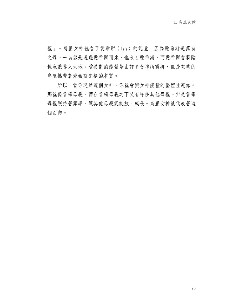 眾古代女神除了提出面向各異的指引,還提供了極富轉化力量的練習,透過手印、吟唱,以儀式性的方式具現神聖陰性的光輝意志,為生命帶來正面影響,並在世界上點燃善的火光。