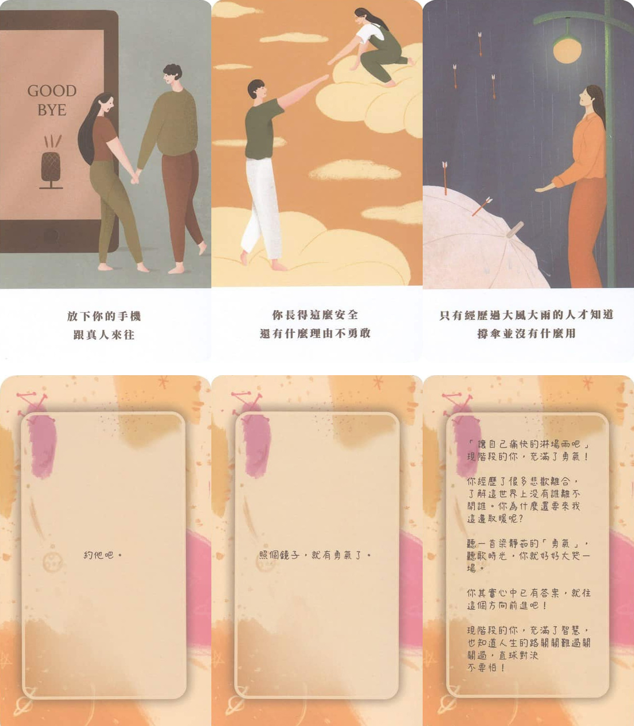 正確的使用它,它就能扮演人生中的路標、給你多點智慧告訴你該怎麼走,它神準,是因人的潛意識中往往已經有了答案,但我們卻缺乏了面對的勇氣,當我暈船時,我知道我該做的是封鎖對方帳號,而不是跟他說早安還幫他買早餐,而生活指引卡上的毒辣語錄正是一個適時打醒你的當頭棒喝。