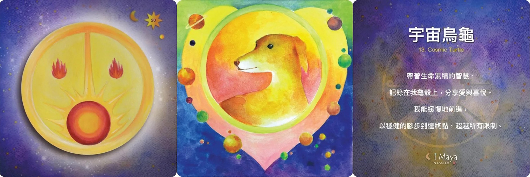 將13月亮曆的圖騰、調性、力量動物,轉化為強而有力的圖像;搭配全彩說明書的內容介紹,藉由《星際馬雅卡》完整的七個用法,一步一腳印地實踐與落實地運用在生活中,將13月亮曆與個人生命轉化做精準的能量連接。