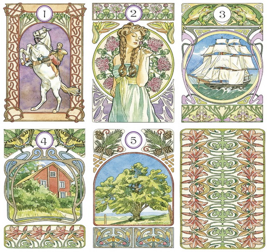 Product Descrpition: The nostalgic energy of Art Nouveau is captured in this Lenormand oracle in a way that provides advice and unique perspectives on any life issue you may be experiencing. With graceful figures and stylized motifs, this is a deck that invites breakthroughs into realms of knowledge and peace. Features the elegant forms of artist Antonella Castelli.