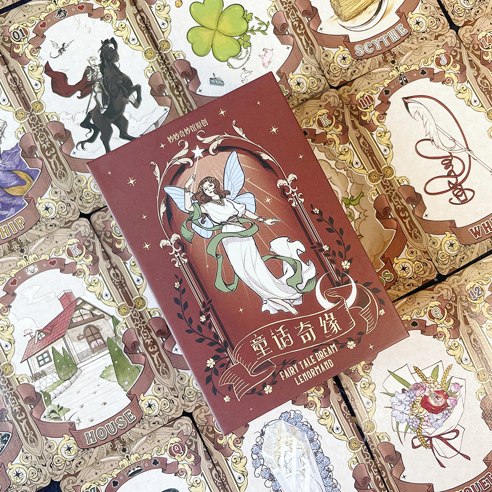 The inspiration for Fairy Tale Dream Lenormand comes from my endless love for classic fairy tales since childhood. On those magical and adventurous nights, my imagination soared in the fantastical world of fairy tales. These stories became treasures in my heart. Today, I've merged these fairy tales with Lenormand cards to create this set of vintage pen-style Fairy Tale Dream Lenormand cards. Each card contains elements of a classic fairy tale, such as the snake from "Snow White," the heart from "The Steadfast Tin Soldier," and the book from "One Thousand and One Nights." These plots and characters are cleverly woven into the card designs, and I hope that when you see this deck, you can feel the dual charm of divination combined with fairy tales, evoking warm memories deep within.