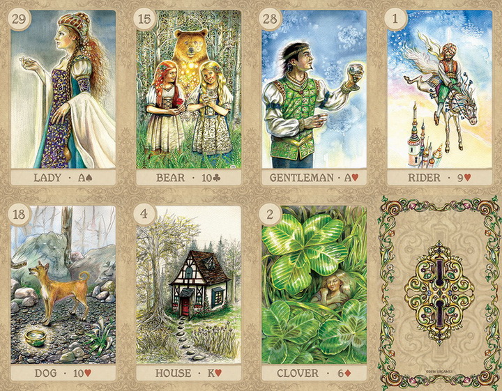 Product Descrpition: Fairy Tales have been teaching us timeless life lessons for centuries. Lisa Hunt’s enchanting artwork draws us into the magical world of peasants and princesses, dragons and daring deeds. By weaving imaginative myths into the Lenormand structure, Fairy Tale Lenormand helps readers connect with the cards in meaningful and memorable ways. The 38-card multicultural deck, presented in a treasure chest tin, includes extra Gentleman and Lady cards for personalized readings.