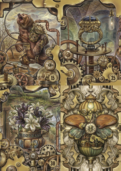 Product Descrpition: A brilliant new reading deck featuring all the brass clockworks, outfits, and accoutrements that fans of this style have grown to love. Designed as a more detailed view of the traditional Lenormand themes and symbols, the Steampunk Lenormand ups the ante with romance and intrigue spinning around human happenstances and elations. These feelings and insights bursting forth from these cards evoke a sense that you're on a grand adventure, joining in the human struggle against ordinary challenges as you reach out to achieve your own version of happiness and success.
