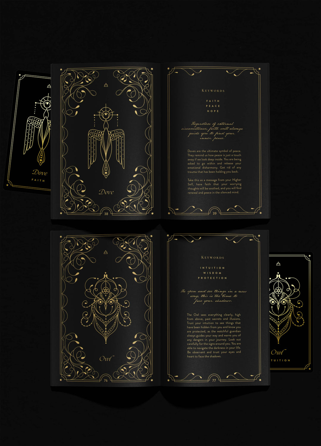 Inspired by the creatures walking with us on our planet, this deck, allows to harness the magic of the Wild. Designed in a minimal and yet detailed way, in gold foil back and front, you can receive the guidance and wisdom of each animal of the 44 included in this deck.