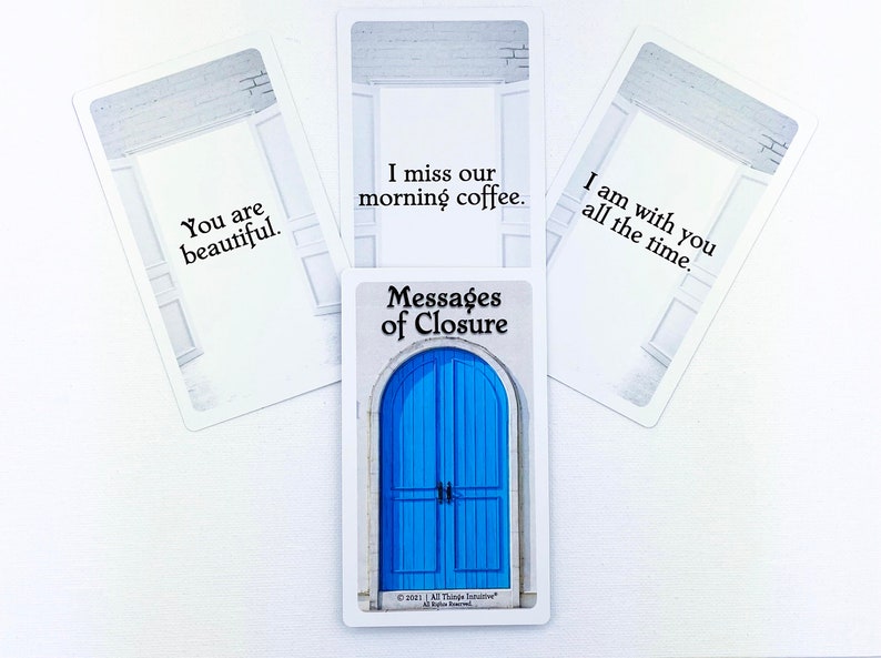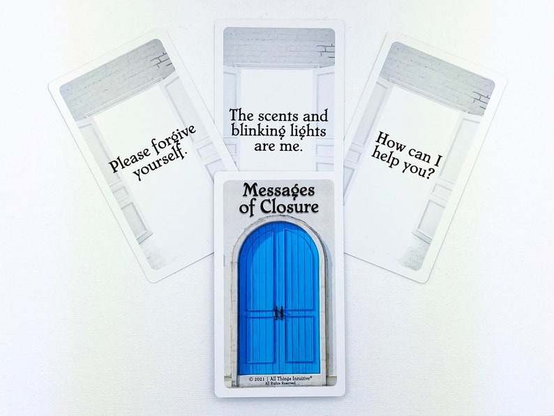 Product Descrpition: Need a message from a departed loved one? Messages of Closure © is a 54-card oracle deck created for those who have unfinished business with someone who has left or has passed away. The person might have been a spouse or significant other, a parent or grandparent, a friend, or anyone. This oracle card deck can help provide the answers you seek, especially if the relationship was difficult.