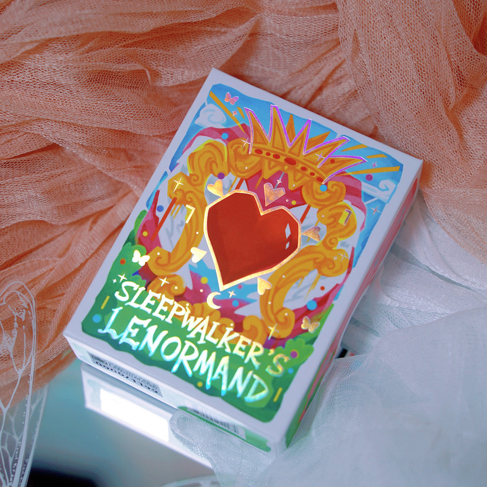 Complementing the Sleepwalker's Tarot, this beginner-friendly Lenormand deck features 42 more snapshots of the Sleepwalker's wondrous dreamscape. Direct, intuitive, and autobiographical, it will help inquiring souls find clarity through serendipitous encounters with different indicators, be them tangible relics or peaceful visages.