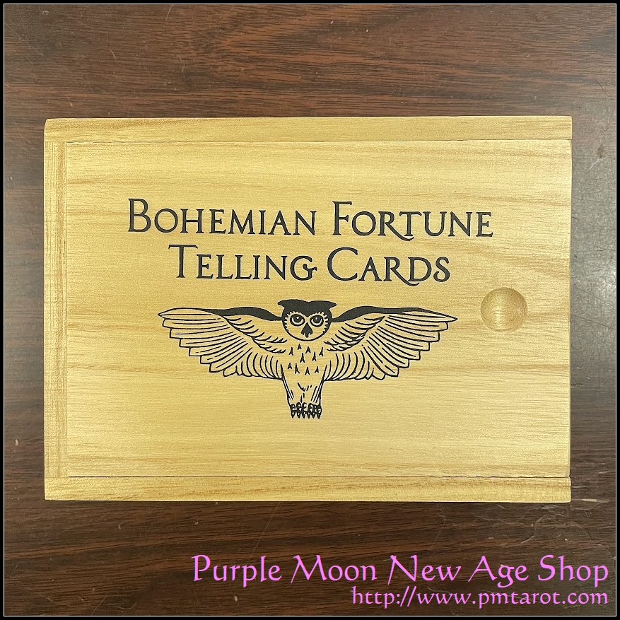Product Descrpition: The Bohemian Fortune Telling Cards - Traditional Smaller Size, with cold stamping and sliding wooden box