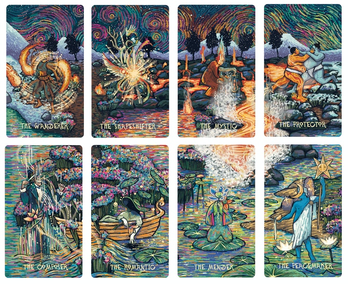 Product Descrpition: The Cards are approximately 2.75" x 4.75" and all share identical backs. The cards are printed with the highest quality inks on durable cardstock and are finished with a matte UV varnish and edged with labradorite blue edges.
