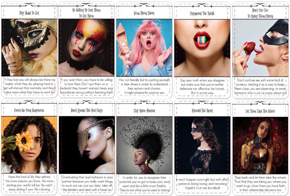 The artist created this deck to help couples persevere when facing obstacles, the guidance given is to help you build a stronger foundation with your partner. This deck will help you identify where the issues are coming from, figure out what next step to take to help you work on your relationship or even see what your partner's next move will be towards you to fix your relationship. These cards are blunt but with some sugar coating ;) so if you are easily triggered please do not buy this deck :) but in order to make progress in a relationship we must remove those rose colored glasses.