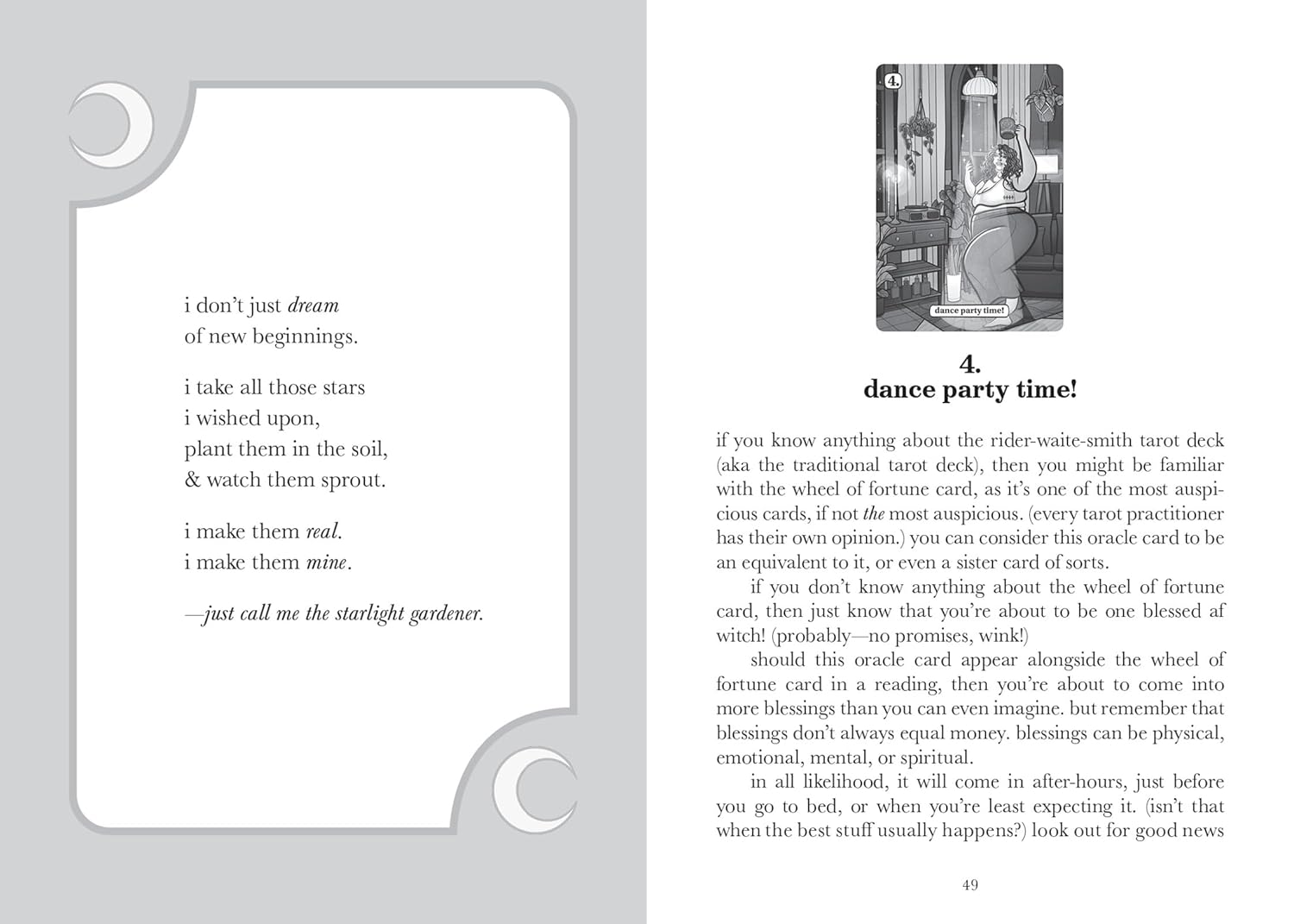 With cards like "get glammed up," "learn to be a little flexible, witch," and "midnight garden stroll," this deck is a love letter to all the chubby witches around the world who are looking to welcome a new era of softness into their every day.