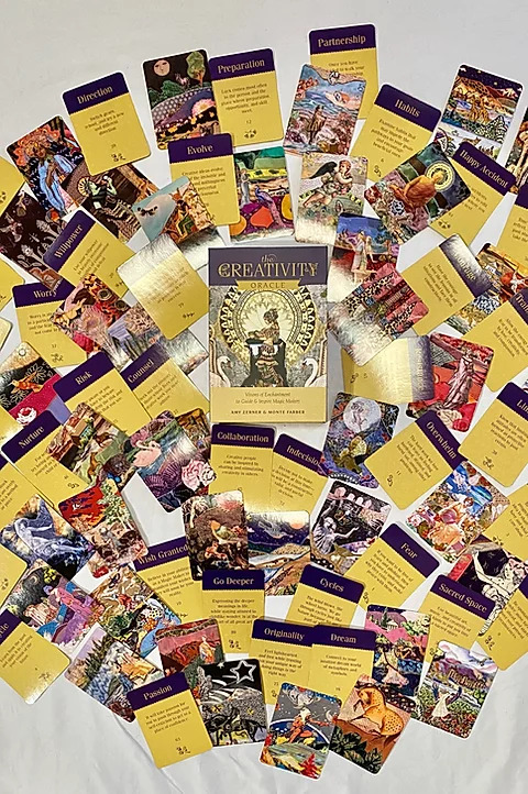 Product Descrpition: Husband-and-wife team Monte Farber and Amy Zerner devised this beautiful new oracle deck and guidebook for you- the magic makers, writers, artists, and craftspeople of the world-to empower you as a compass, an assistant, a prompt, an obstacle remover, a game changer, and a pathfinder. The inspiring principles in this divination system are designed to help stimulate the creative process and enable an imaginative and intuitive flow, while motivating and guiding your gifts and talents, whether you want to make your living doing what you love or to bring more fulfillment into your life. Each of the eighty cards is created from Amy's richly-sewn tapestry collages, visions of enchantment that make every one of your oracle readings a work of art.