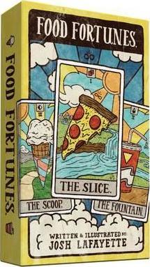 Product Descrpition: This playful take on tarot makes divining the sacred mysteries of what's for dinner tonight? a snap. Simply lay the cards out three at a time and voila-a meal appears, a vision from the spirit realm. This dining divination game can be played alone or with hungry friends to give apathetic appetites a mystical nudge in the right direction.