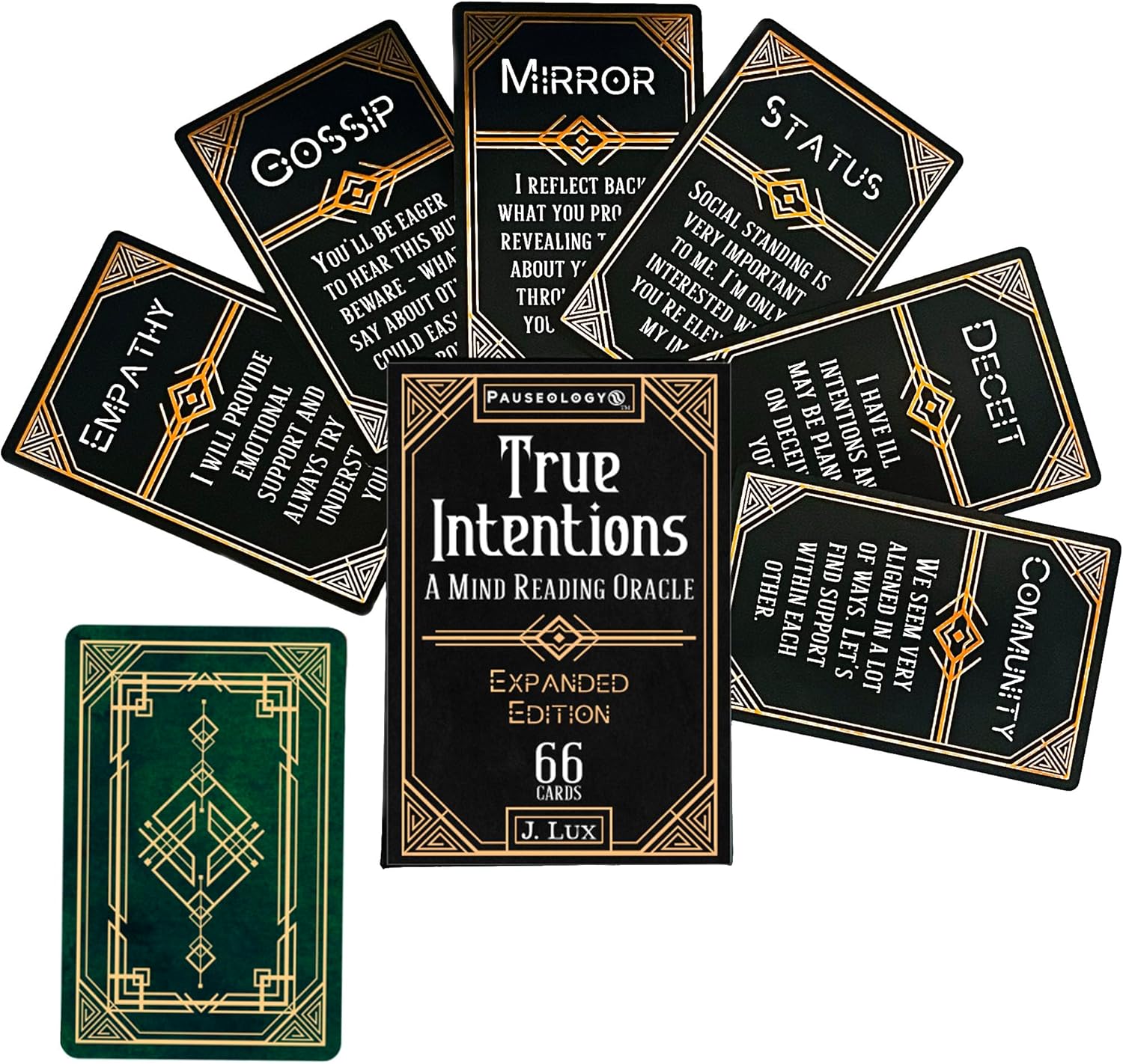 Most problems in life can be answered with one simple questions – what is their intention? Are they going to help or hinder your growth? Are they looking for true friendship or will the relationship be more transactional? Is love on their mind, are you on the same page? Intention is one of the most important things you can know about a person. Whether it be business or professional, understanding the “why?” behind an action can be invaluable insight. Your intuition contains this knowledge, but understanding can be challenging. Allow True Intentions to serve as your companion, helping you to better interpret gut feelings and emotions and allowing you to uncover hidden motives and agendas to make more informed, confident decisions in life. True Intentions includes a deck of 55 cards with meanings on them, making them perfect for beginners and advanced readers alike. A simple shuffle will produce clear answers quickly, no flipping through a fussy guidebook with tiny letters, the meanings are conveniently on each card! Considerately palm sized makes for a natural overhand shuffle, awaken your intuition and connect to your higher self.