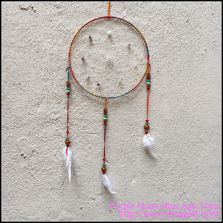 As told in Native American legend, hanging a Dream Catcher near where you sleep protects the sleeper from bad dreams. The dreams are attracted by the feathers and the web filters out the bad dreams while allowing the good dreams to pass through.