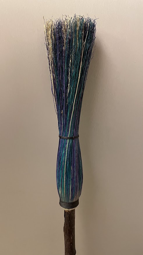 We hand-dye all of our broomcorn and lovingly stitch and adorn them with special details. All brooms are anointed with an ancient recipe of an iron solution for protection and belladonna is applied near the base of the broom (near the broomcorn) for additional magic and 'flying' properties for when you really need to clean our your house. We finish the handles with a handmade Roman beeswax which contains natural beeswax and bayberry wax for money, luck, and prosperity in the home.