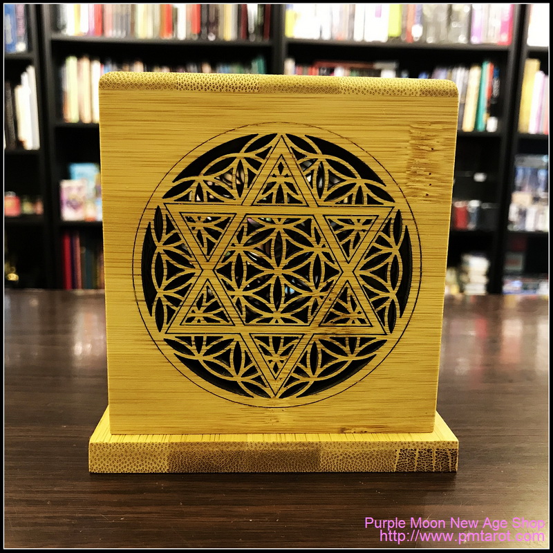 Bamboo Made Meditative Incense Box with Hexagram and Flower of Life