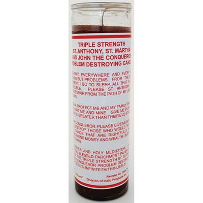 In time of prayer and holy meditation I write my request on parchment paper and affix it to the bottom of the triple strength problem destroying candle to symbolize my soul's infinite faith in Jesus.