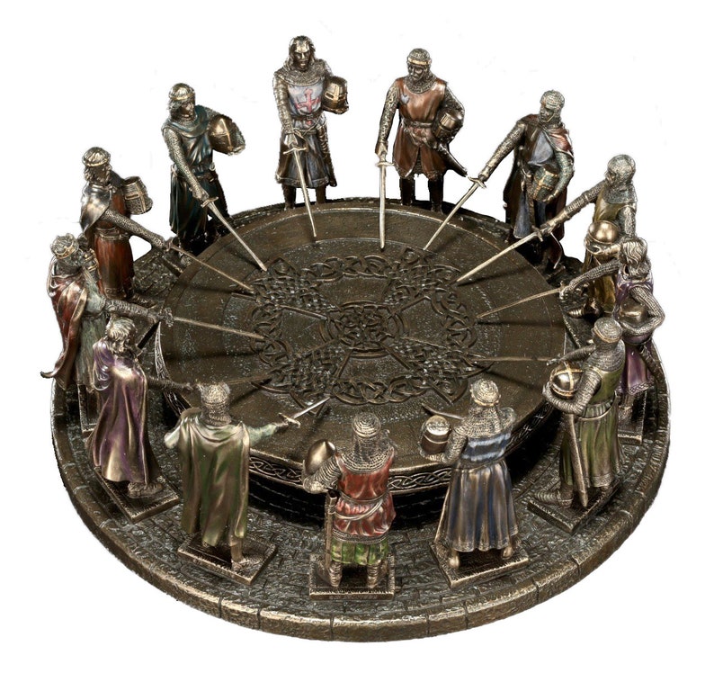 Product Descrpition: The Knights of the Round Table are the knights in the fellowship of King Arthur in the literary cycle of the Matter of Britain, first appearing in literature in the mid 12th century. In this French-derived branch of Arthurian legend, the Knights are an order dedicated to ensuring the peace of Arthur's kingdom following the period of early wars and later undergoing the mystical quest for the Holy Grail. The Round Table at which they meet is a symbol of the equality of all of its members, from sovereign royals to minor nobles.