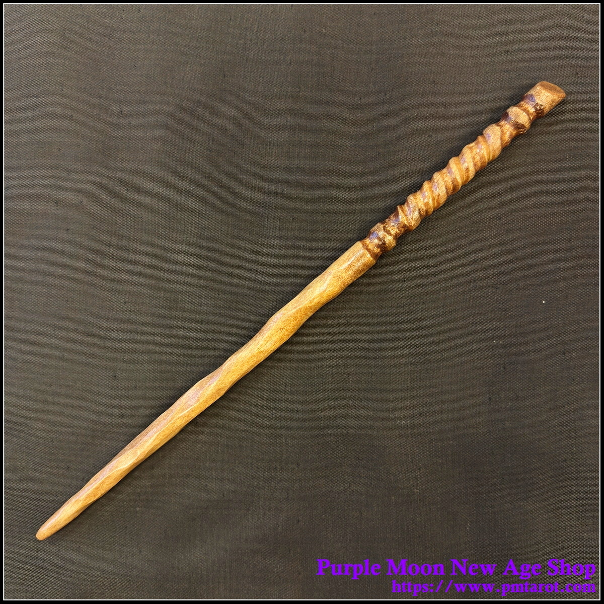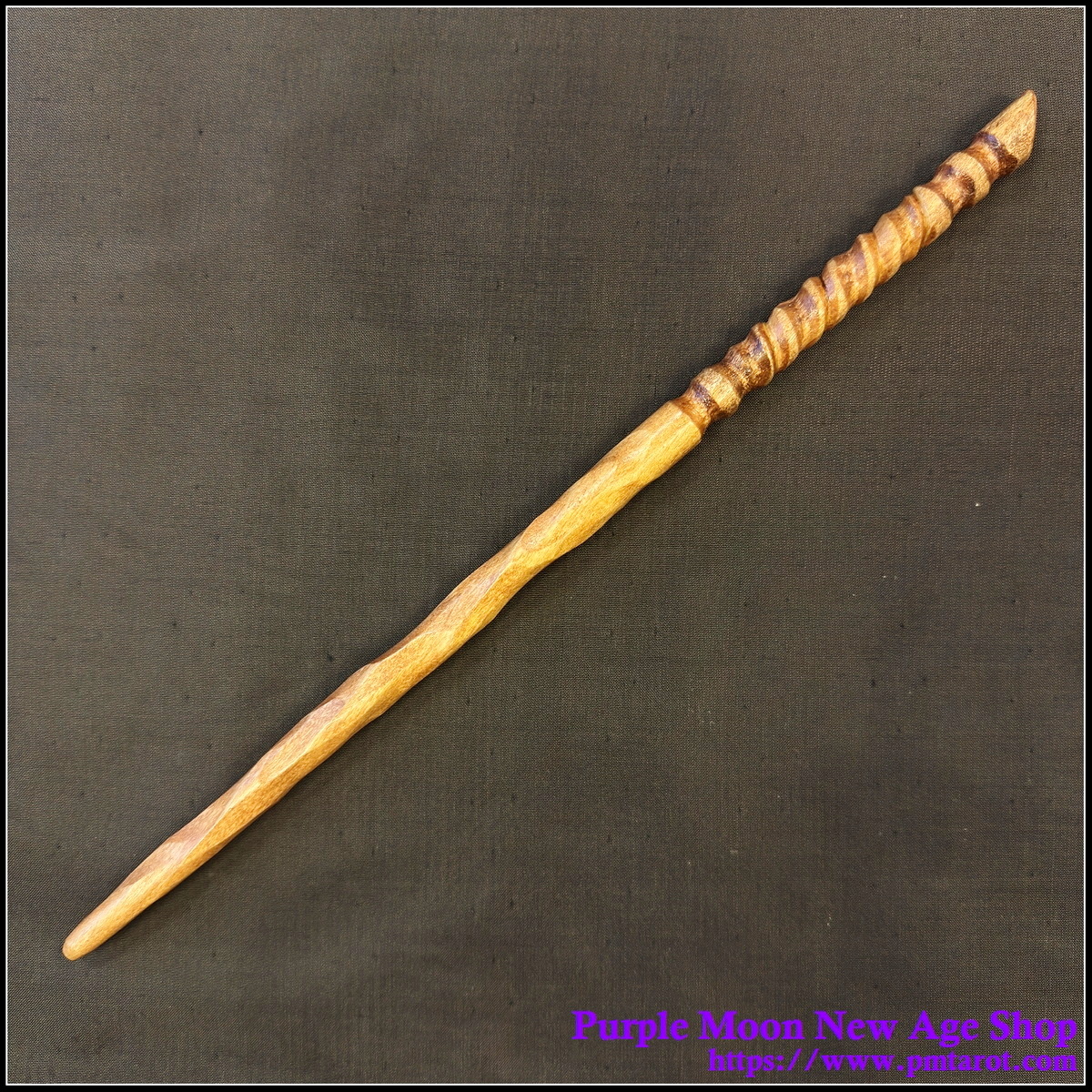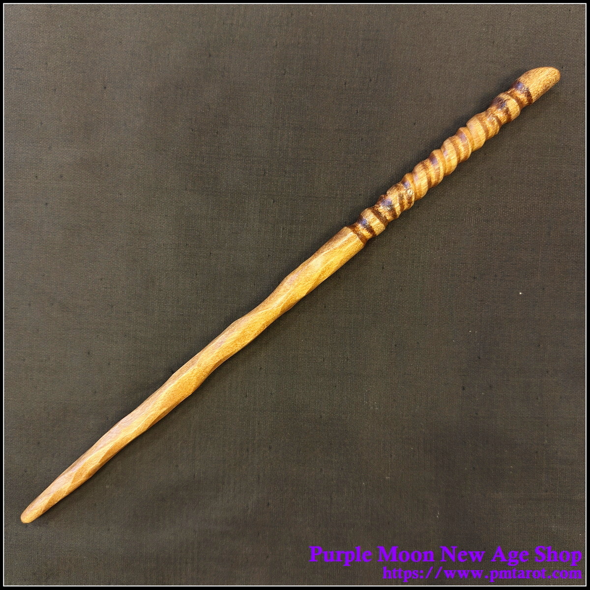 Product Descrpition: This wand is made from one piece of Birch, making it nice and sturdy for years of spellcasting. The handle has been given a solid dark stain; the tip has had the stain rubbed off, leaving the grain to show through.