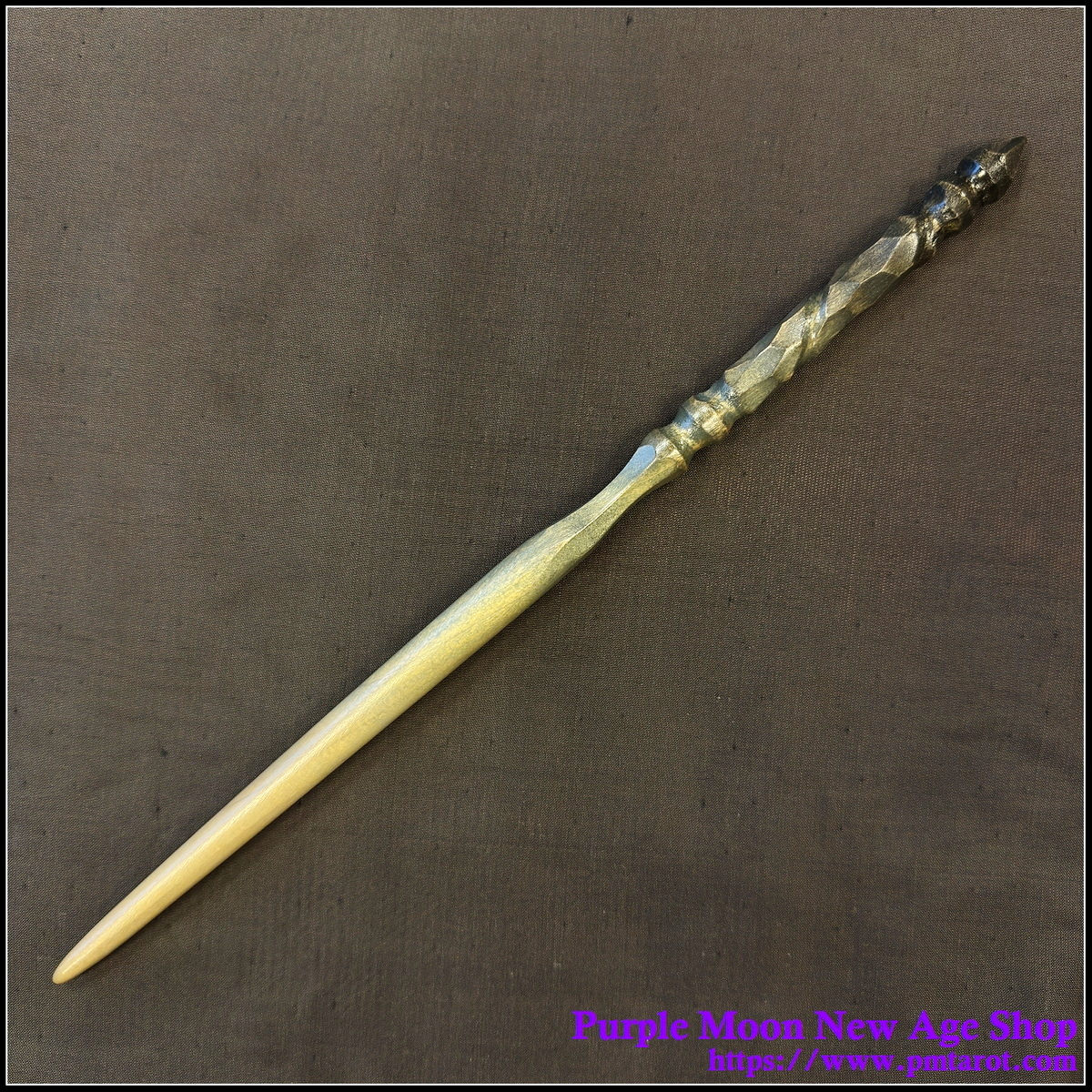 Product Descrpition: This wand is made from one piece of Birch, making it nice and sturdy for years of spellcasting. The handle has been given a solid dark stain; the tip has had the stain rubbed off, leaving the grain to show through.