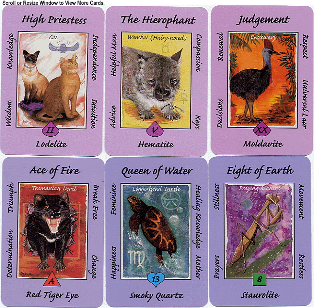78 card tarot deck with animal drawings of native Australian animals. Come with Instruction pamphlet book.