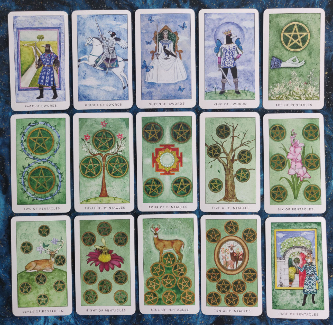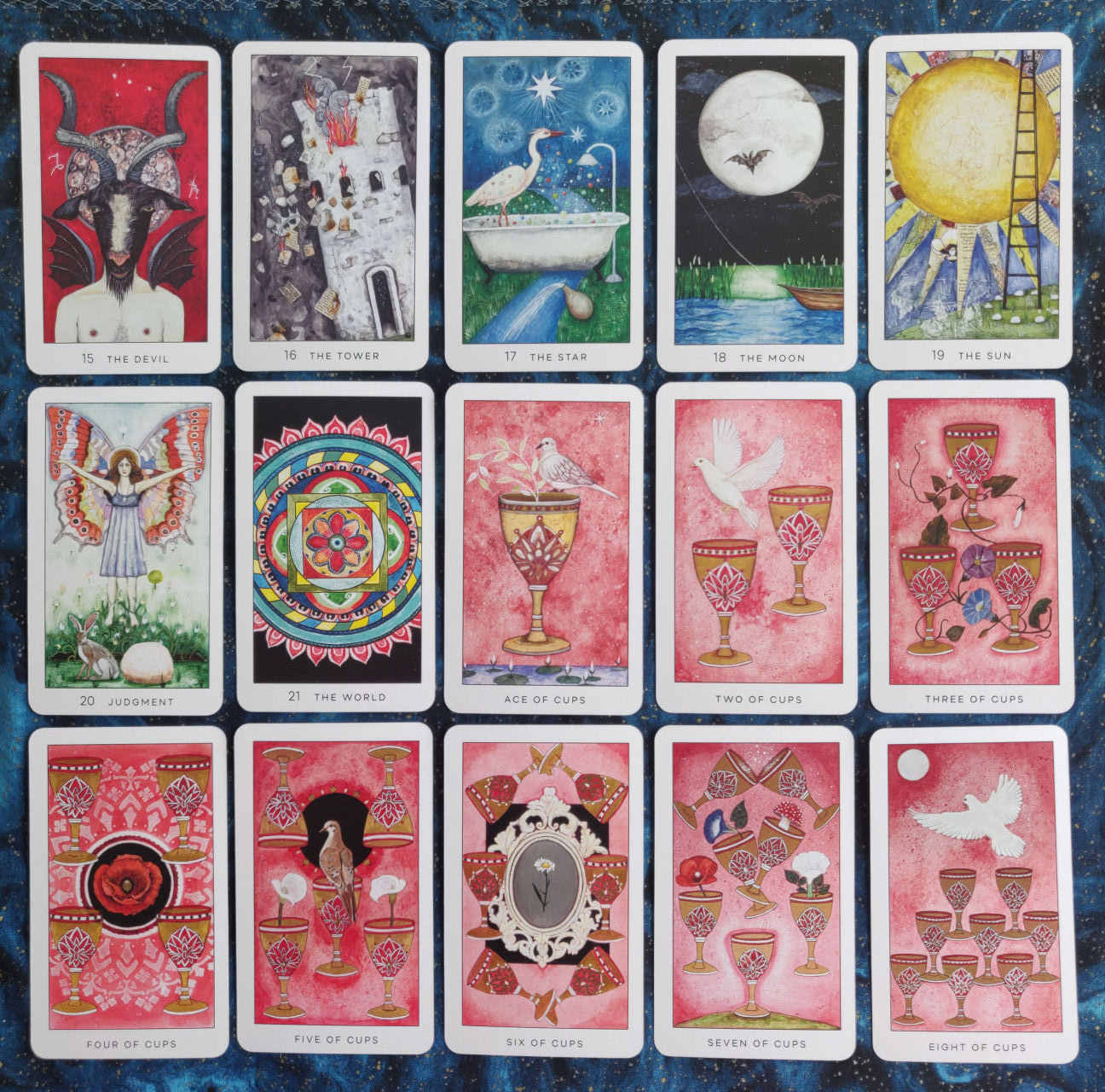 Richly painted, at times fantastical, fine art images of plants, animals, and people co-inhabit a dream-like world guiding tarot readers down a radiant path of awakening creativity and personal growth.