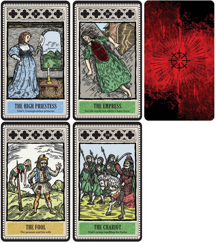 Product Descrpition: The Vlad Dracula Tarot is a 78-card tarot deck and booklet based on the life of Vlad the Impaler, the infamous medieval ruler of Romania who inspired Bram Stoker's legendary vampire.