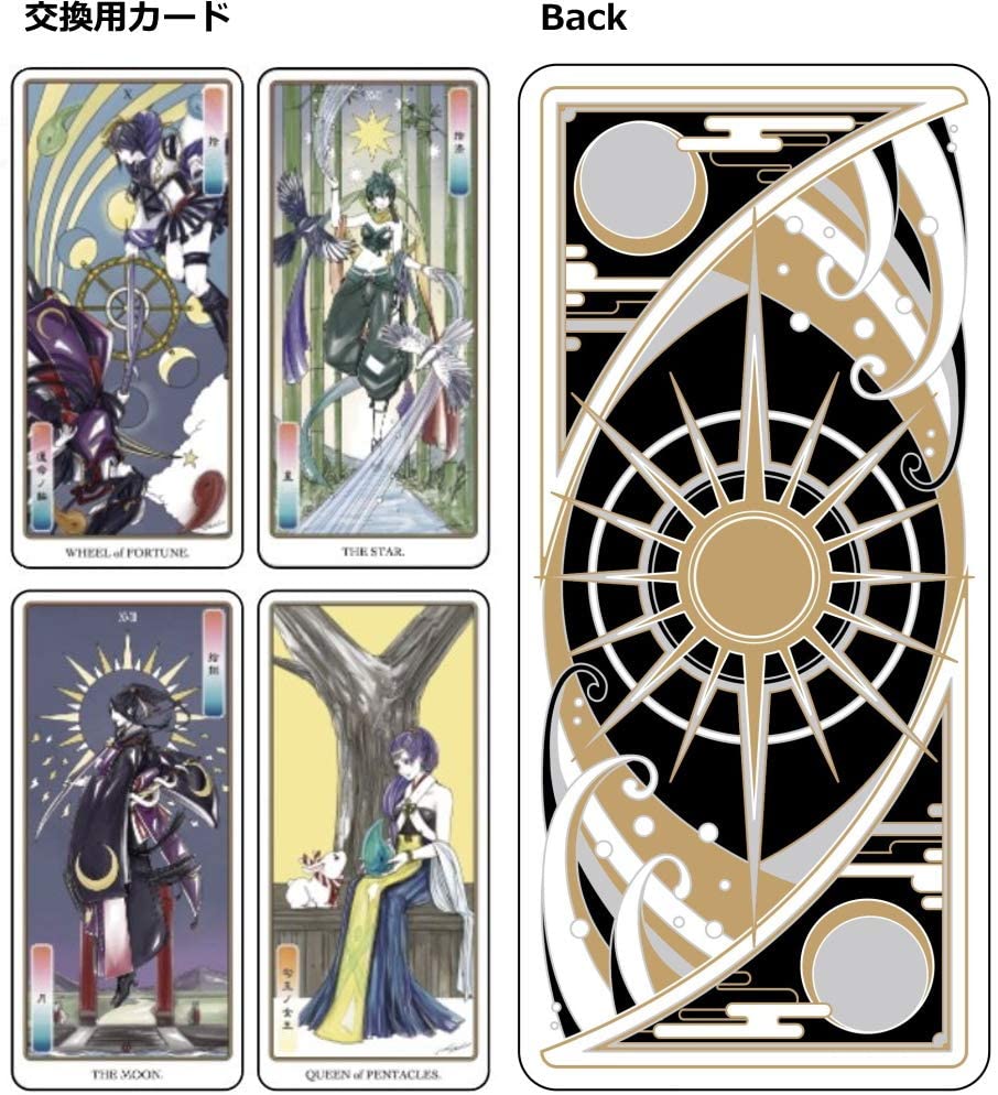 『運命の輪…月齢』、『星…まつろわぬ国』、『月…夜蝕国』、『勾玉の女王…ヤガミヒメの憂鬱』各1枚の代替カードが付いており、合計82枚組です。
