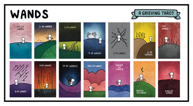 A Grieving Tarot is absolutely not a how-to guide for using tarot through all losses. These drawings, and my words, are not here to tell you how to live your own wild and personal grief. It is simply a gentle reflection of my own experiences and interpretations, as I’ve walked my own grey path. It is my hope that it finds the right people, and that maybe it can be a gentle way to introduce more grief-informed perspectives to your readings.