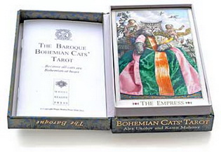 Product Descrpition: The Baroque Bohemian Cats' Tarot was first published by Magic Realist Press in 2004, and after several reprints will be issued again in 2011 in a refreshed and gloriously over-the-top new version. The deck has been wildly popular with tarot readers and collectors and with those who simply love the extravagance of Baroque costumes, Czech castles and cats dressed to the whiskers in lace, silk and satin. The cards follow the Rider Waite Tarot system so it's easy to read "out of the box" for both experienced and beginner readers. For this new edition there is also a unique extra card, "The Fortune Teller" that can be incorporated into readings or simply used for framing or display.