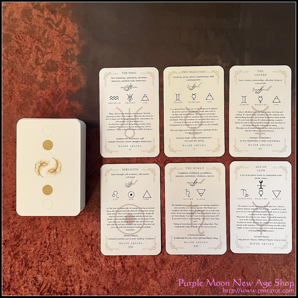 Product Descrpition: A tarot deck includes 78 unique tarot cards designed for beginners. Each card consists of the elements, astrology and meaning on it.