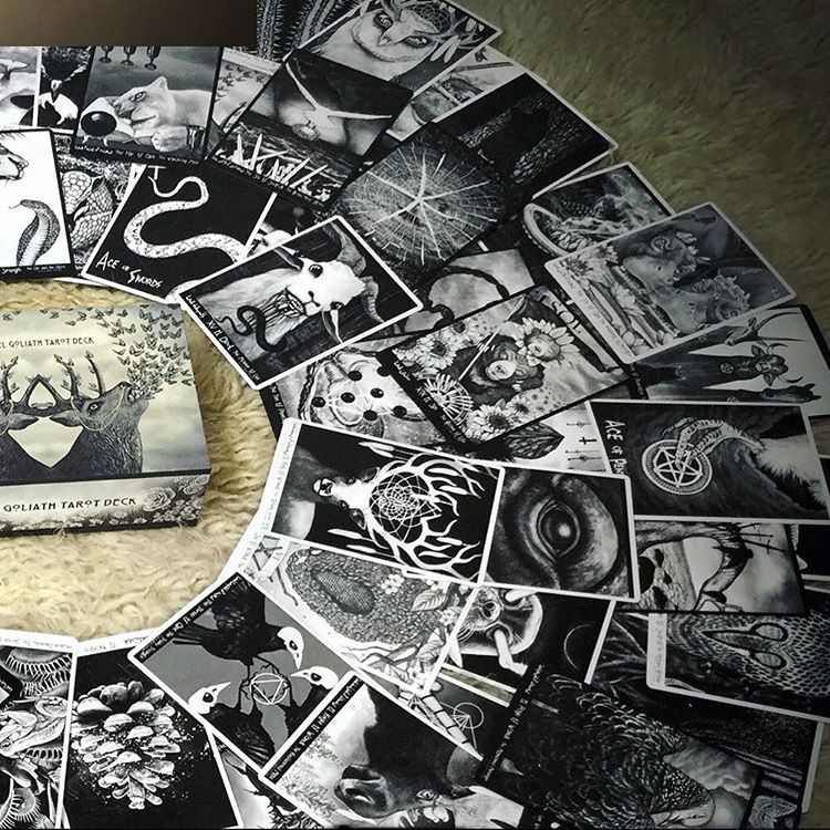 Product Descrpition: A beautiful Alchemical, Shamanic, Shadow Tarot Manifesto suited for spiritual exploration, readings, and guidance! The El Goliath Tarot Deck is comprised of the traditional 78 card RWS Tarot system, and features an additional 17 bonus cards that are unique to the Tarot.
