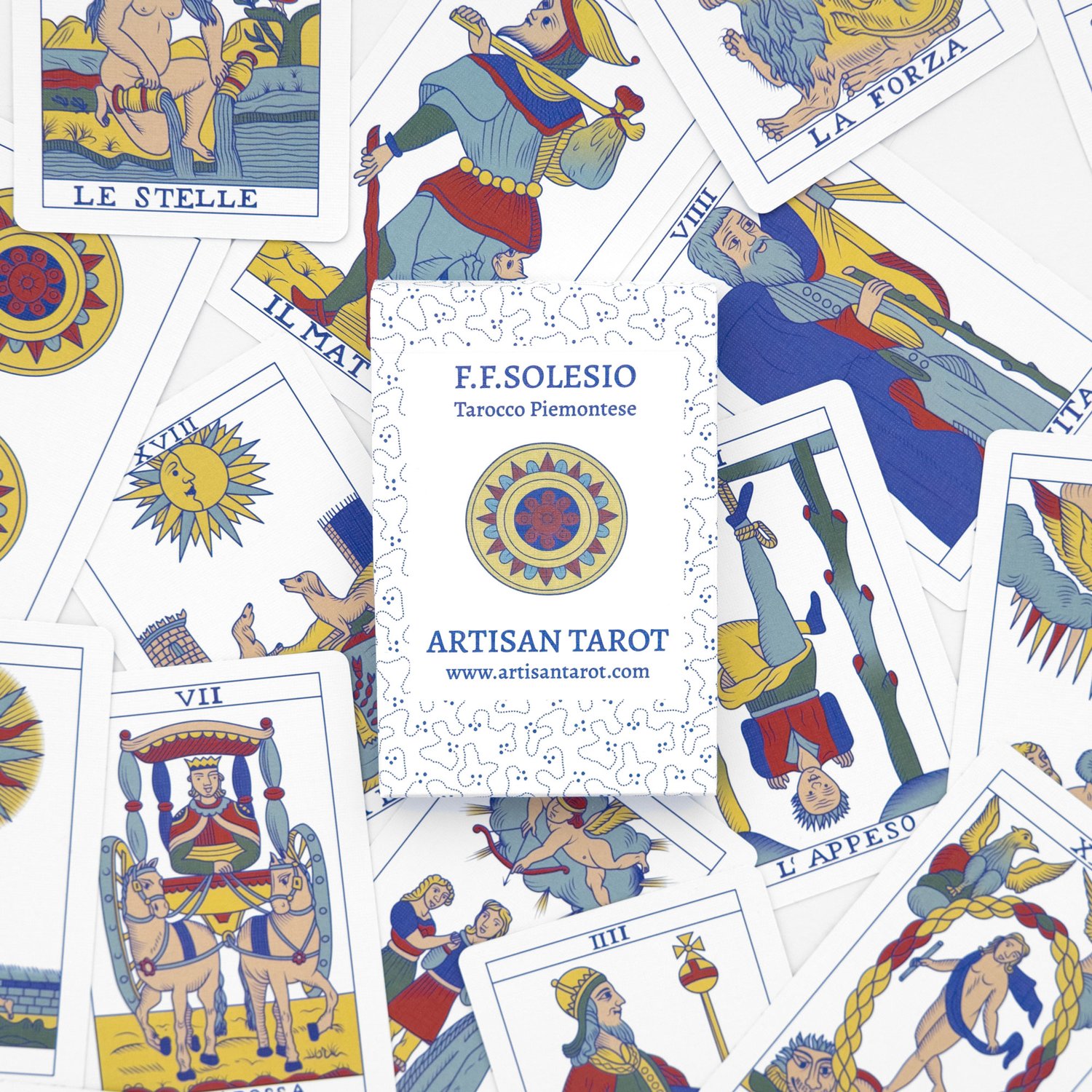 Product Descrpition: A restoration of the trump cards based on the tarot printed in Genoa, Italy by F. F. Solesio in 1865.