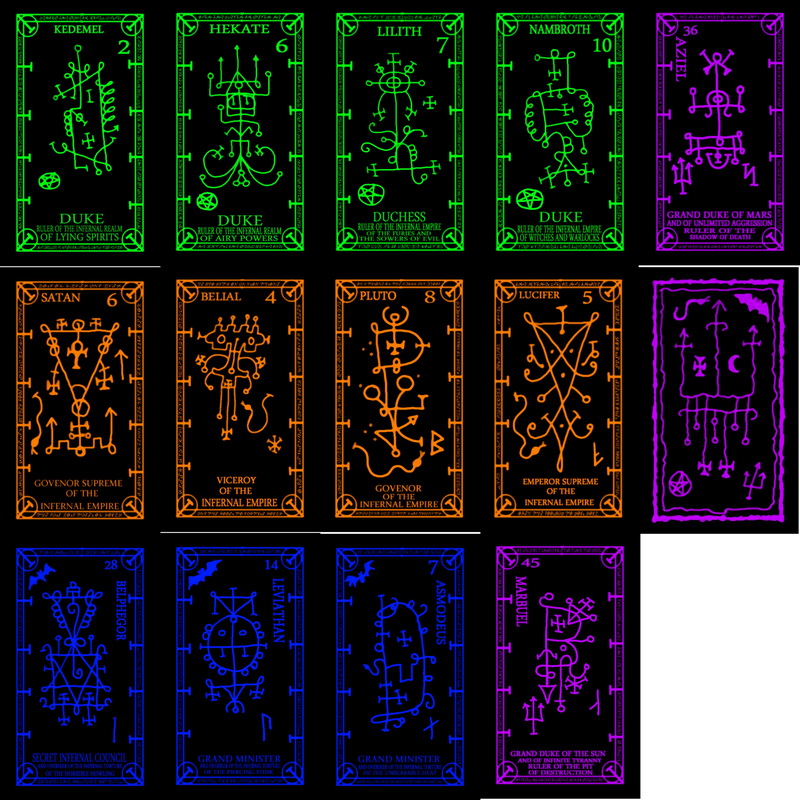 This tarot is based upon a medieval German deck that was lost some time ago or is no longer in use. In short, it's a secret within a secret. There are four suits: snakes, inverted pentagrams, bats, and tridents. It is not the normal deck, per say, because it was developed to sense your true nature of the Self - Ego. The cards tell you your weapons for success for the past, present, and future by revealing what your Ego (True Self) was doing at the current time. These cards connect with the inner nature of your subconscious and when asked questions will reveal what it is that you subconsciously want or desire. I have also included more info regarding the cards and what each one means. This deck is one of the most sought after decks in its time. It also has two unique spreads (Inverted Cross Spread & Inverted Pentagram Spread) to find out any situation about yourself or about someone else. It is so accurate that it's scary. The power of each card resides in the card itself and each being has the influence to change things when asked. The beings of these cards are very powerful and have the power to influence any desire created by the person who owns the deck. Once the desire is thought of, it will manifest itself into fruition. So if you want the power to change your life and what it holds, I would buy this deck. Be careful of what you want and desire. I have also included the meanings and representations of each card for further study.