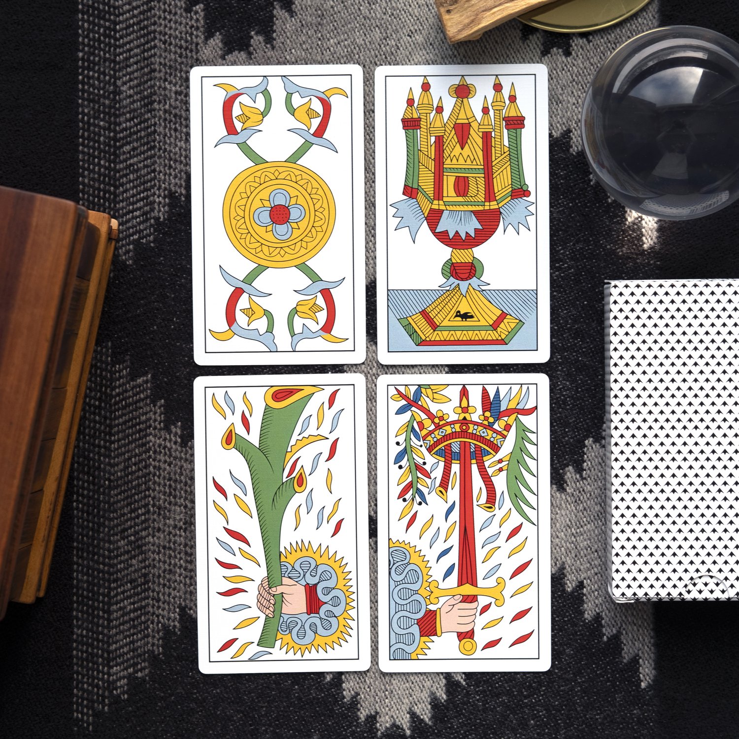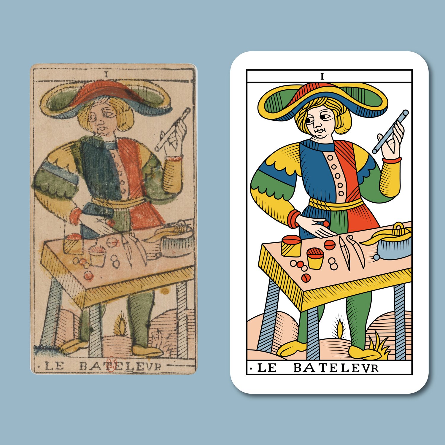 The Jean Dodal Tarot was produced in Lyon, France in 1701. Two versions are preserved in the National Library of France and the British Museum. We referenced both of these decks for our restoration.