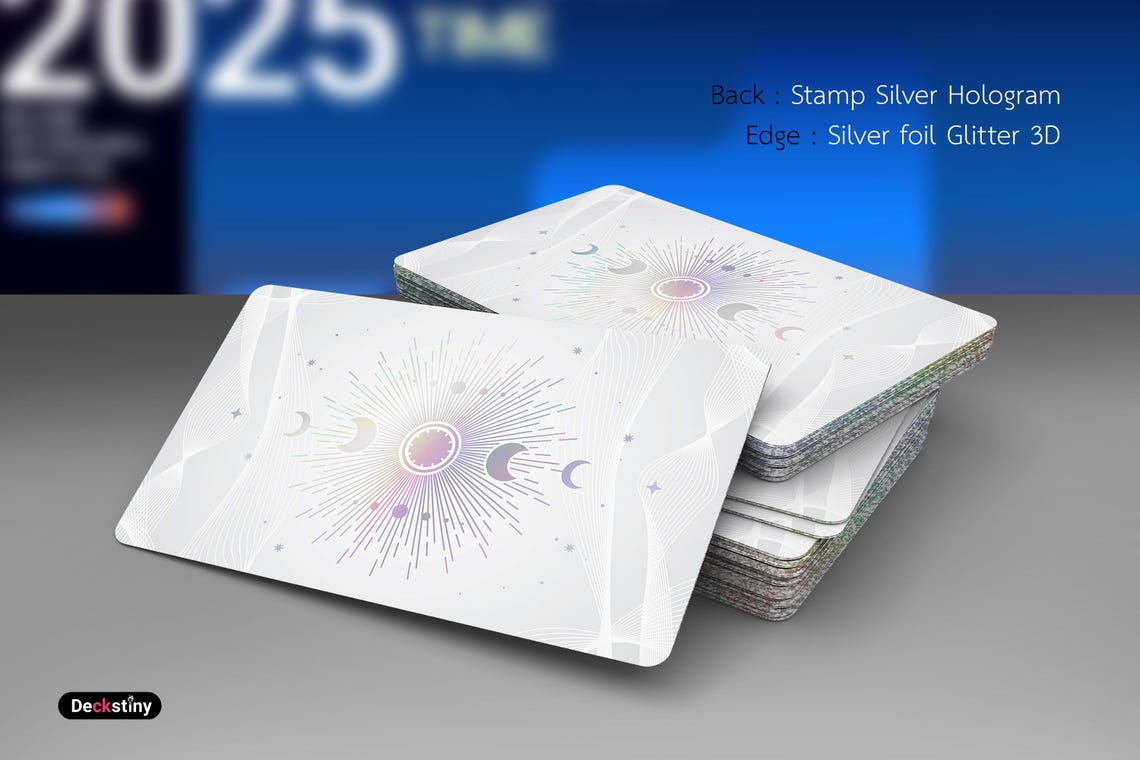 Stamping : SILVER HOROGRAPHIC FOIL on front & back