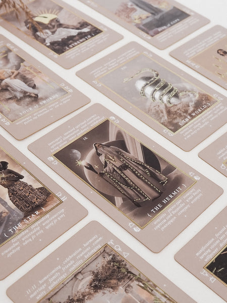 We invite you to take the first steps in learning and exploring the magic of Tarot with our beautiful Beginners Deck. This tool was created for the starry-eyed beginners and souls who are just starting to dip their toes into the realms of the Occult and Mysticism. Our easy to use deck is here to assist you in learning the Tarot, tapping into to your intuition and build confidence with your card readings.