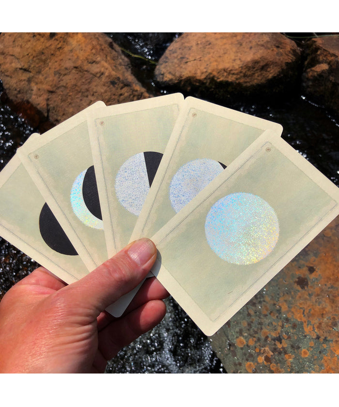 All imagery in this 84 card deck is hand-painted using traditional oils by Linnea Gits and all copy is hand-lettered by Peter Dunham. The deck's inspiration is the soulful spirit of nature, early Celtic mysticism, and Renaissance paintings' luminous beauty.