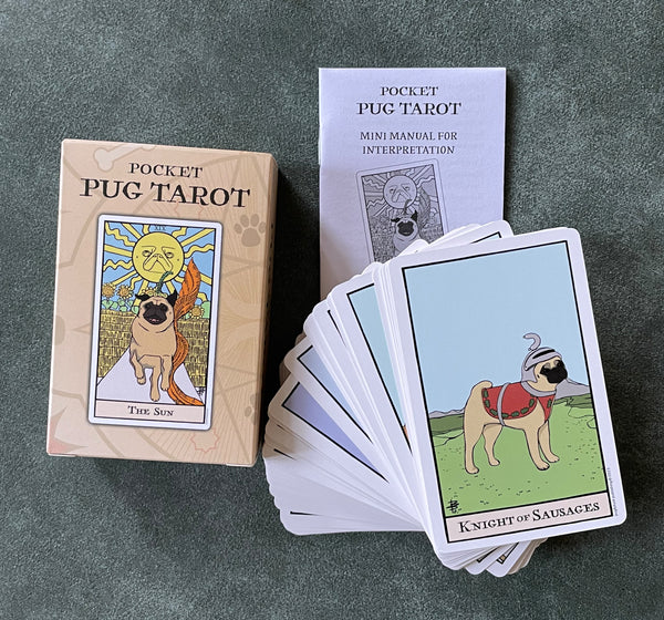 Product Descrpition: The Pug Tarot Deck is the English sister of the German Pug Tarot. A dog tarot deck that is collectible for any dog lovers.
