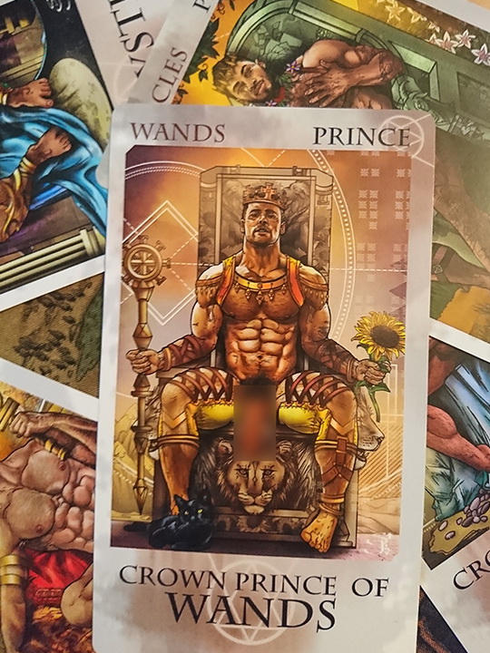 The Divine Masculine XXX Edition is the all male uncensored version of the St. Jinx Arcana Tarot Deck. The remaining six female cards from the first edition (The High Priestess, The Empress, and the Four Queen cards) have been replaced with The Mystic, The Consort, and The Crown Princes. This deck contains 78 cards (made up of the 22 Major and 56 Minor Arcana)