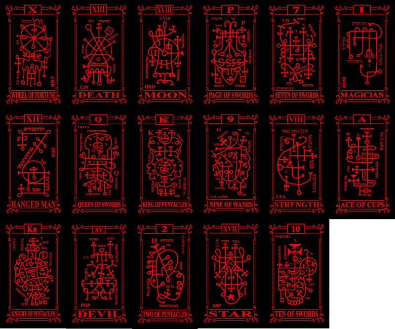 The Wraithe Sigillum Tarot is not a traditional Tarot deck. This tarot deck is fashioned in the same style as the Goetia Sigils as seen in the Keys of Solomon. Each card has its own sigillum (symbol) of power that helps the individual connect with the Universal Consciousness. It is by these symbols that all answers are truthful and clear. I have had much success with these sigillum prior to putting them on these cards. You will not be disappointed with the energy attached or how accurate the readings are. Each card has it's own unique sigillum that represents its energy on the Astral. I have added borders, numbers, and names of each card. The Lesser Arcanum can be used to play games like a normal deck of cards - each suit has an Ace through 10. Pages would be the equivalent of Jacks. Now the back has been redesigned as well. It now reveals if a card is negative or positive. When you flip over a card, look on the back and see if 666 is upright or 777 is upright. 666 is negative and 777 is positive. I have also included the names of the Enochian Angels that each card is connected to as well for further use and understanding of each cards meaning and relation to you or the person using the cards.